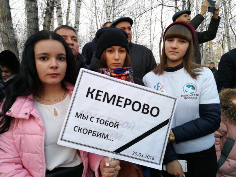 Почтить память погибших в страшной трагедии пришли также мэр Тынды Евгений Черенков и председатель Тындинской городской думы Любовь Шестак. Градоначальник сказал об общей скорби тындинцев и выразил соболезнования в связи с трагедией, унесшей десятки жизней. После была объявлена минута молчания. Горожане зажгли десятки свечей. Из них после митинга волонтеры выложили слово «Кемерово».