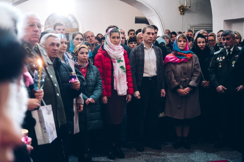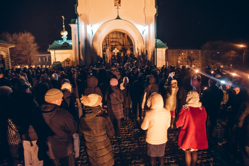 Фоторепортаж из главного храма БлаговещенскаСегодня верующие отмечают главный православный праздник — Пасху. Тысячи амурчан встретили Светлое Христово Воскресение в храмах. Праздничные крестные ходы и богослужения прошли во всех приходах Амурской области. В главном храме Приамурья пасхальную утреню и литургию совершил архиепископ Благовещенский и Тындинский Лукиан. На ночную службу приехал губернатор Александр Козлов. После богослужения прошло освящение пасхальных приношений. По традиции верующие, соблюдавшие самый строгий 40-дневный Великий пост, разговляются освященными яйцами, куличами и пасхами. В этом году пасхальный крестный ход сопровождал снегопад. На ночной службе побывал фотокорреспондент «Амурской правды» Дмитрий Тупиков.