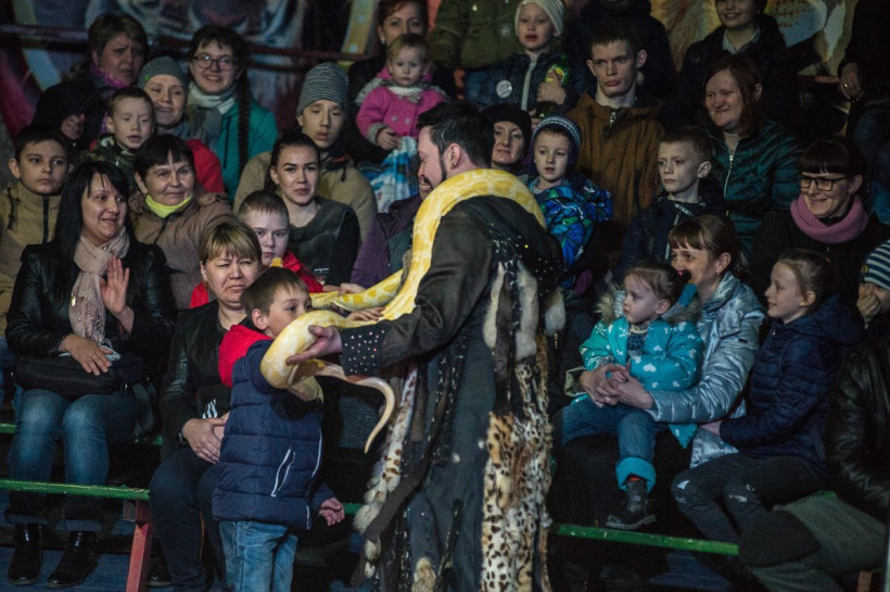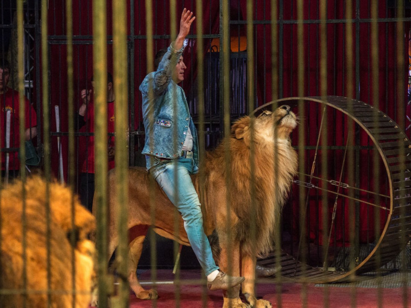 «Они со мной почти с рождения. Первый год жили у меня дома», — рассказывает дрессировщик. Тройка его артистов — звезды номера, ставшего гвоздем цирковой программы. В зале воцаряется тревожная тишина, когда манеж окружают оградой, впуская на сцену хищников. В клетку заходит человек, и грозные львы смиренно усаживаются на тумбы. Начинается представление: звери ходят по жердочке, прыгают через огненное кольцо, качаются на качелях под куполом цирка, рычат по команде и даже аплодируют. В финале номера особо впечатлительные зрители охают и прикрывают глаза ладонями: дрессировщик кормит льва сырым мясом прямо изо рта. «Всему научил их исключительно добротой», — отмечает Андрей.