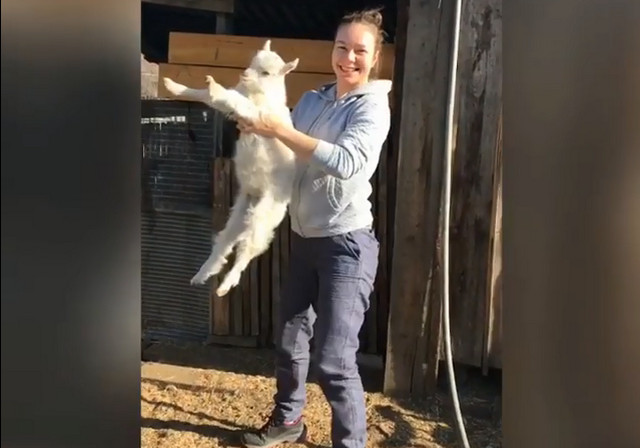 Благовещенка устроила силовую тренировку с козленком вместо гантелей (видео)