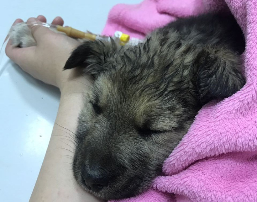 В клинике щенку поставили капельницу. «Температура у него была критически низкая, градусник даже ее не показывал. Глазки не реагировали на свет», — вспоминает волонтер. Только спустя 4 часа малыш начал приходить в себя, все это время Ольга Ефремова была рядом с хвостатым ребенком. В воскресенье, во второй половине дня, Боссика выписали. Спасительница забрала его домой на время реабилитации.