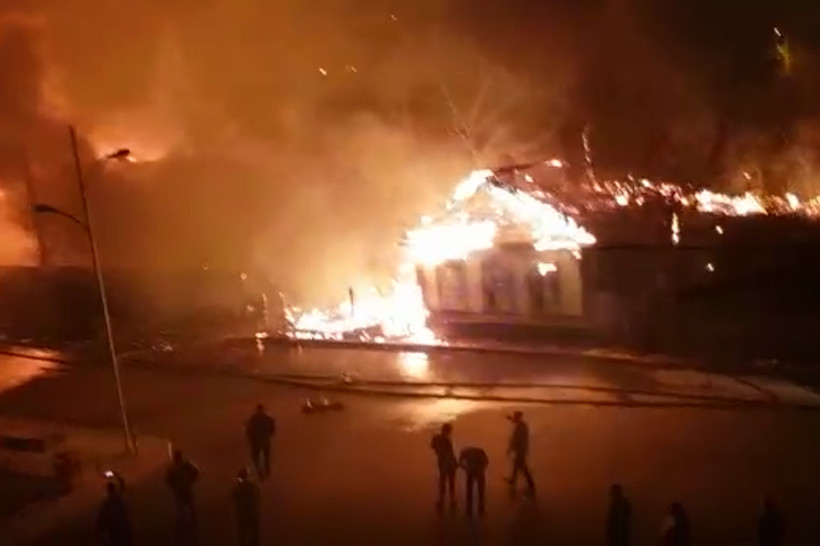 В Благовещенске горят несколько домов по улице Новой (видео)