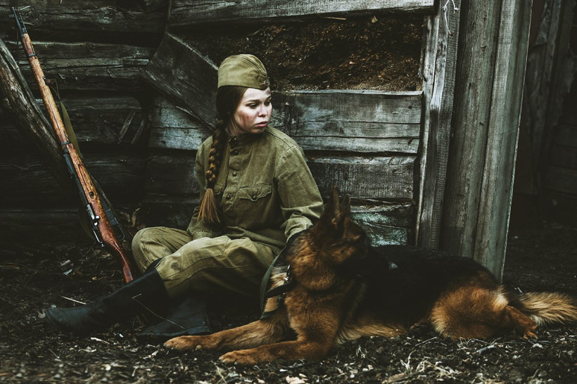 Для съемок фотограф привлекает собак. «В военное время они помогали вытаскивать раненых с поля боя, подносили медикаменты. Все это мы постарались передать на наших снимках», — добавила Евгения. В нескольких эпизодах снялась немецкая овчарка Лекса, которую предоставил клуб собаководства ДОСААФ России «Триумф». Другая хвостатая, Лили, сыграла роль помощника санинструктора.