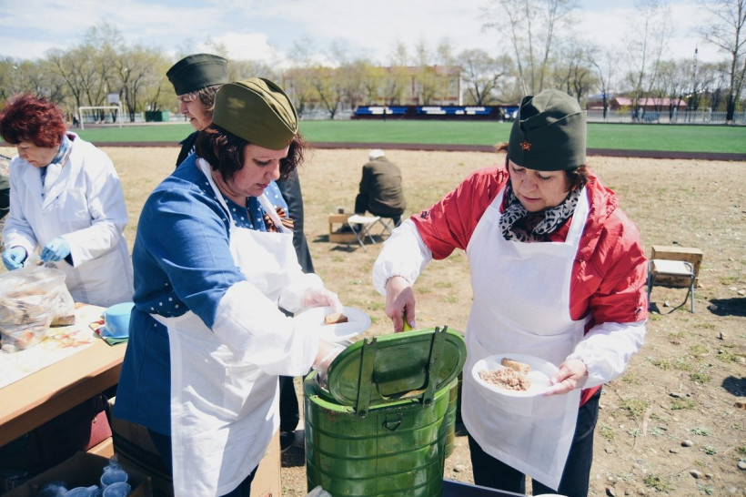 Вчера, 7 марта, в школе № 15 Благовещенска прошел большой исторический квест, во время которого реконструировали эпизоды Великой Отечественной войны. Участие в нем приняли не только школьники, но и приглашенные на мероприятие ветераны и дети войны, труженики тыла. Молодые участники квеста собирали автомат, метали гранаты из окопа, оказывали первую медпомощь раненым и танцевали вальс. А затем все подкрепились на полевой кухне. Всего было приготовлено 1 500 порций каши.