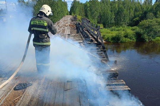 Пожар на деревянном мосту остановил движение по автотрассе в Амурской области