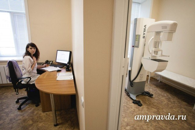 Женщинам старше 40 лет сделают маммографию. Для благовещенок в возрасте 40—50 лет обследование можно проходить не чаще одного раза в два года, старше 50 лет — не чаще одного раза в год. Предварительная запись также не требуется. Обследование пройдет в рентгенологическом кабинете стационара онкодиспансера на втором этаже.