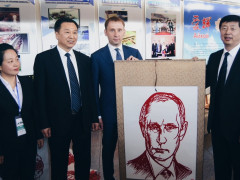 Портрет Владимира Путина подарили китайские участники «АмурЭкспоФорума» в пятницу, 18 мая, амурским властям. Мастер по вырезанию Чи Ян из района Айгунь города Хэйхэ привезла на выставку в Благовещенск несколько работ с политиками.