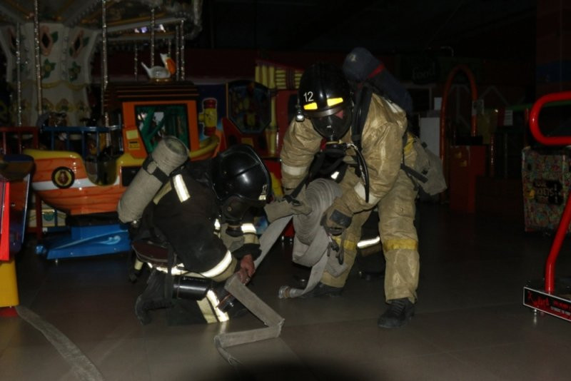 Более ста человек эвакуировали в четверг, 24 мая, из торгово-развлекательного «Острова» в амурской столице. Здесь прошли масштабные учения Благовещенского пожарно-спасательного гарнизона. По замыслу, возгорание произошло на втором этаже детского развлекательного центра — как это случилось во время страшного пожара В ТРЦ «Зимняя вишня» в Кемерове. 11 человек оказались отрезанными огнем и дымом от путей эвакуации в кинотеатре и мебельном салоне на втором этаже. Их эвакуировали при помощи выносных спасательных устройств, позволяющих пострадавшему дышать в задымленном помещении