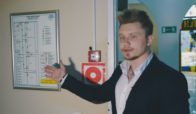 — Для каждого кинозала свое видео, ведь залы разные и выходы, соответственно, тоже. Это краткий курс для зрителей, как вести себя при возникновении чрезвычайной ситуации. Ведущий показывает, что есть в залах на случай пожара — огнетушители, система пожарной сигнализации. Также ведущий рассказывает, что произойдет в первые секунды пожара. То есть в зале включается свет, киномеханик останавливает фильм. Людям нужно без суеты выходить через основной или запасный выход, слушаться работника кинотеатра. Плюс на кадрах показаны планы эвакуации, указатели направления движения зрителей, — рассказал «Амурской правде» менеджер кинотеатра «Мир кино» Валерий Митин.