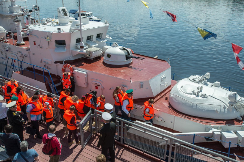 Самая большая очередь выстроилась у сторожевого пограничного корабля «Благовещенск». Всех желающих подняться на борт приветствовал командир сторожевого корабля Павел Шацков. «У нас достаточно много вооружения на борту, надеюсь, что использовать не будем, но в случае необходимости готовы дать отпор», — рассказал командир. А после обеда очереди выросли и к полевой кухне, где бесплатно кормили сытной солдатской кашей и наливали горячий чай.