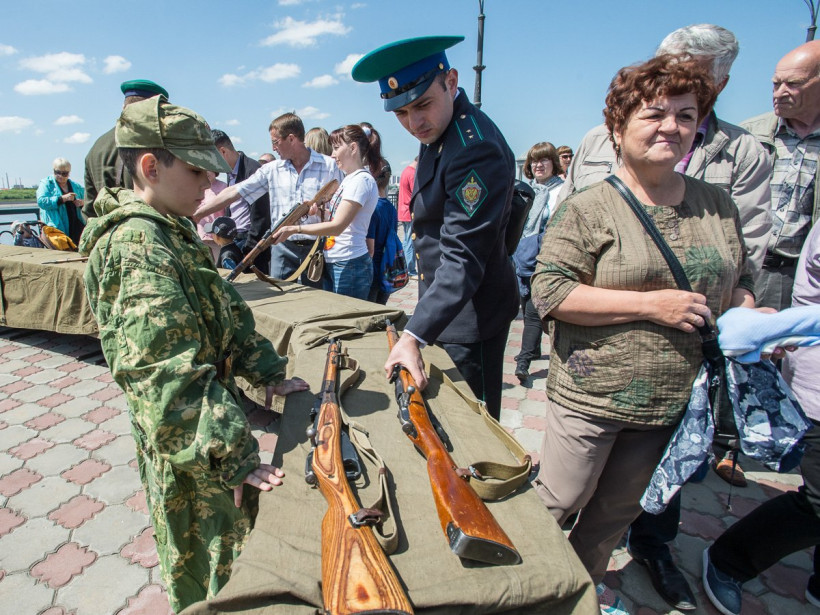 Развлечений на набережной Амура в праздничный день хватало — можно было сфотографироваться возле пограничного столба с собакой, попробовать разобрать настоящий автомат. «Мне больше всего запомнился пограничный пес Стингер с медалью, — не скрывая эмоций рассказал 10-летний Игнат Переверзев. — Когда вырасту, я тоже стану пограничником и получу такую же медаль».
