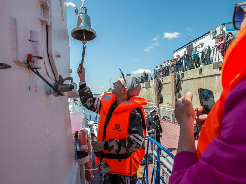 Жители и гости Благовещенска, впервые попавшие на пограничный сторожевой корабль, с удовольствием били в рынду — судовой колокол, и загадывали желание. Большинство мальчишек признались, что загадали самое заветное — стать пограничниками.