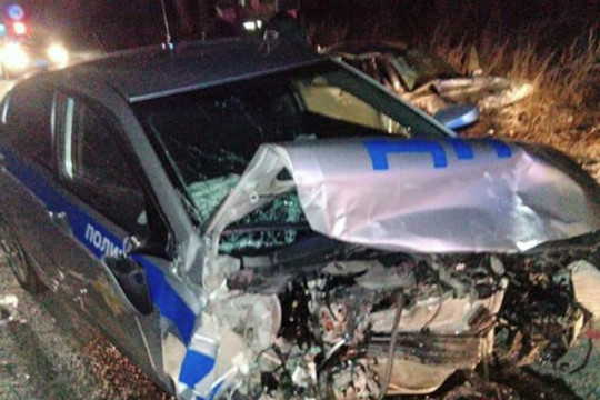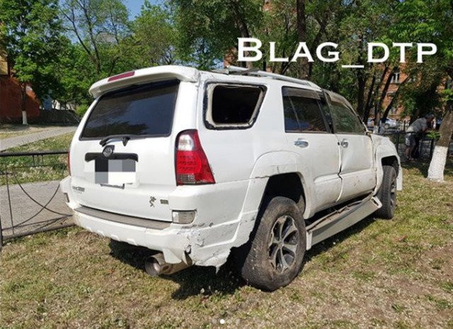 Авария с участием автомобиля ДПС и внедорожника Toyota Hilux Surf произошла днем в пятницу, 1 июня. Автомобили столкнулись на перекрестке Калинина — Зейской. От удара Toyota несколько раз перевернулась и отлетела на обочину.