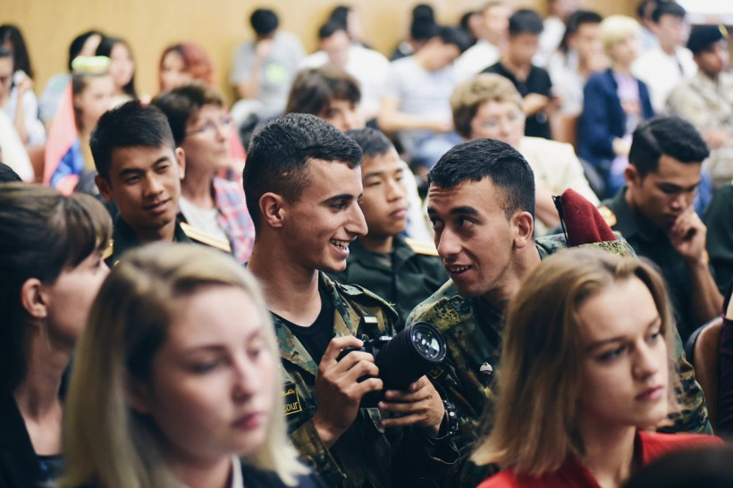 Преподаватель кафедры иностранных и русского языков ДВОКУ Елена Красновская привела на чтения больше 20 курсантов-иностранцев.
