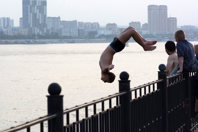 Пароход отчаливает, небольшой пирс у набережной Амура в Благовещенске моментально заполняется молодежью. Эка невидаль — на моей памяти пацаны всю жизнь прыгали с парапета в теплые воды Амура. Тем более в такую погоду, когда ртуть закипает прямо в термометре. Однако не тот случай. Над мерным течением пограничной реки пятиэтажный мат, не у всех, но у каждого третьего шатающаяся походка, развязная речь. Время, что называется — средь бела дня, а точнее, в районе шести вечера. С учетом выходного дня на набережной яблоку упасть негде — недостатка в зрителях нет.