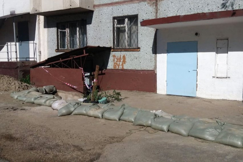Дамба из мешков с песком спасает благовещенскую многоэтажку от потопа