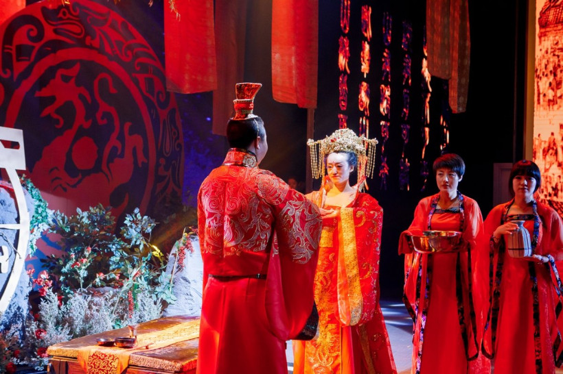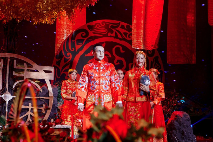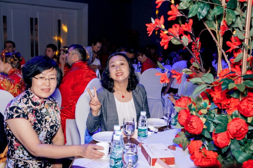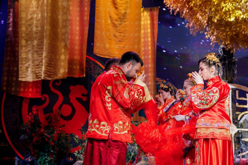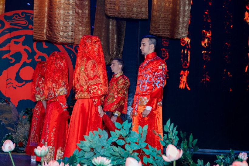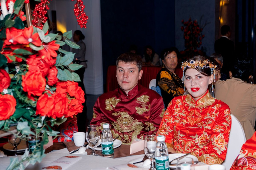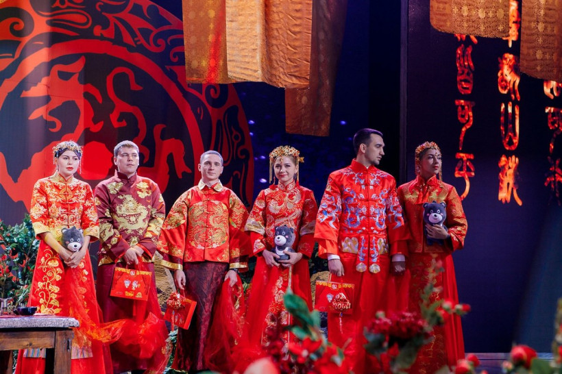 Российским парням и девушкам накануне праздника выдали национальные китайские свадебные костюмы красного цвета. Они символизируют богатство и достаток. Познакомили с ключевыми обрядами. На следующий день благовещенцы их уже демонстрировали на сцене.