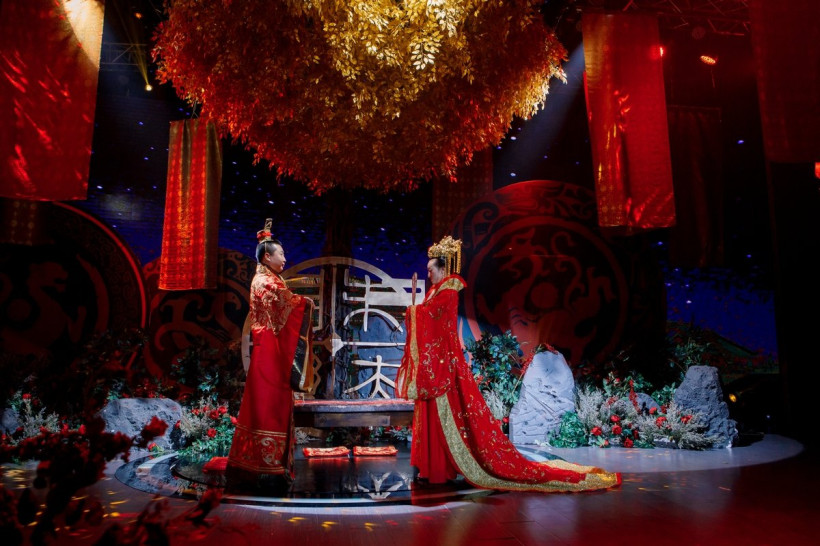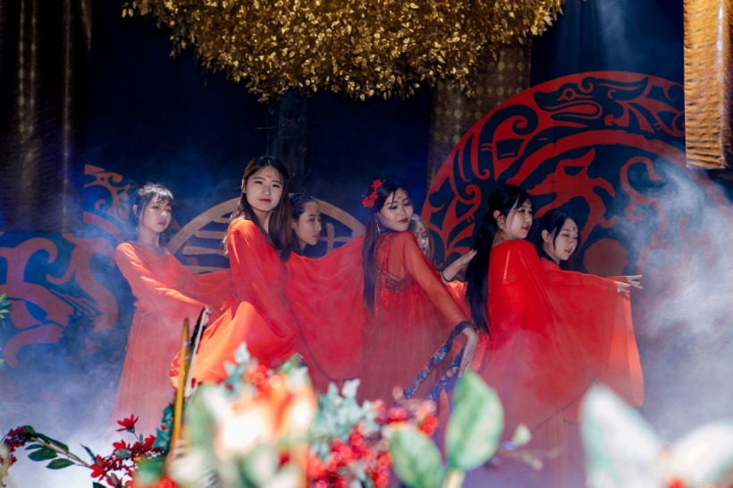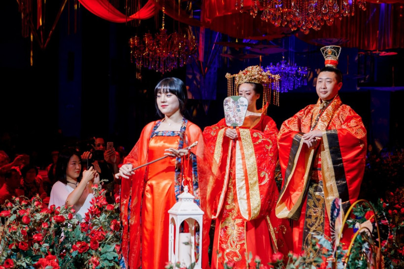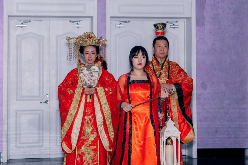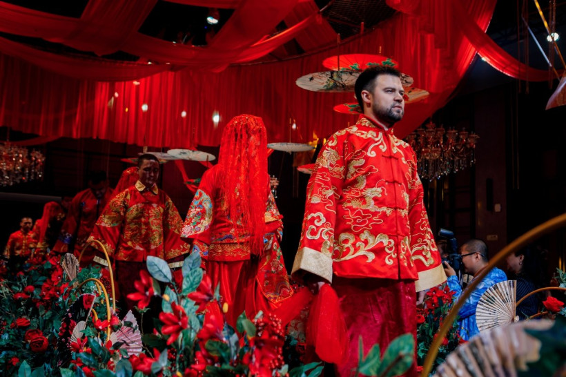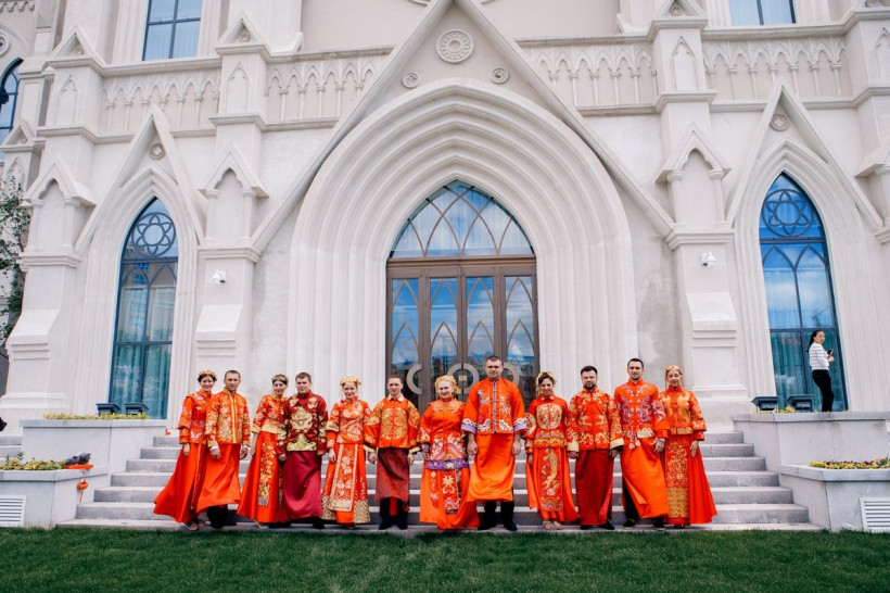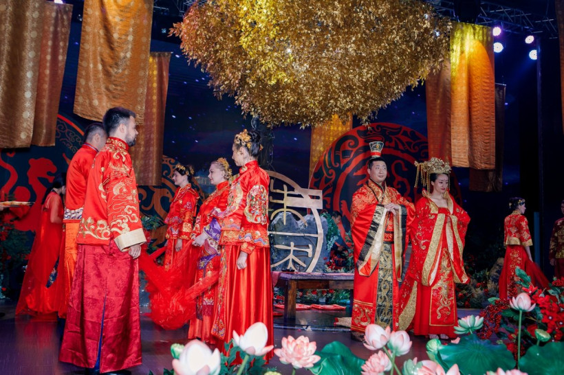 Российским парням и девушкам накануне праздника выдали национальные китайские свадебные костюмы красного цвета. Они символизируют богатство и достаток. Познакомили с ключевыми обрядами. На следующий день благовещенцы их уже демонстрировали на сцене.