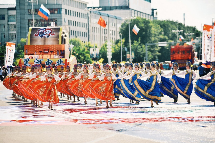 По одной из главных улиц Хэйхэ 28 июня прошло карнавальное шествие в честь открытия IX Международного фестиваля «Российско-китайская ярмарка культуры и искусства». В празднике приняли участие творческие, трудовые коллективы и силовые структуры Хэйхэ. Почетными гостями стала российская делегация в составе 1 200 человек. В колоннах прошли амурские эвенки из Селемджинского, Тындинского и Зейского районов, китайские орочоны, детские коллективы областной филармонии, спортсмены Федерации ушу. Все это время перед почетными гостями свое народное искусство демонстрировали китайские трюкачи, облаченные в костюмы львов. Открыли шествие полицейские Хэйхэ, а закрыли байкеры с обоих берегов Амура.