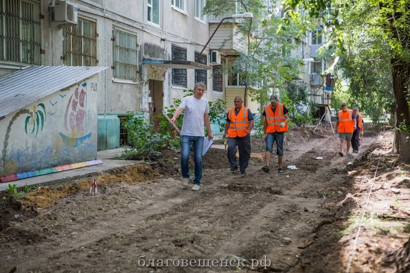 В Благовещенске продолжается программа благоустройства дворовых территорий. В этом году капитальный ремонт пройдет в 24 дворах, в восьми из них уже начались работы. В четверг, 5 июля, первый вице-мэр Благовещенска Владимир Константинов оценил, как продвигаются работы.