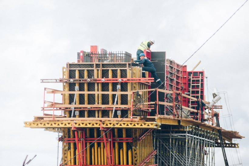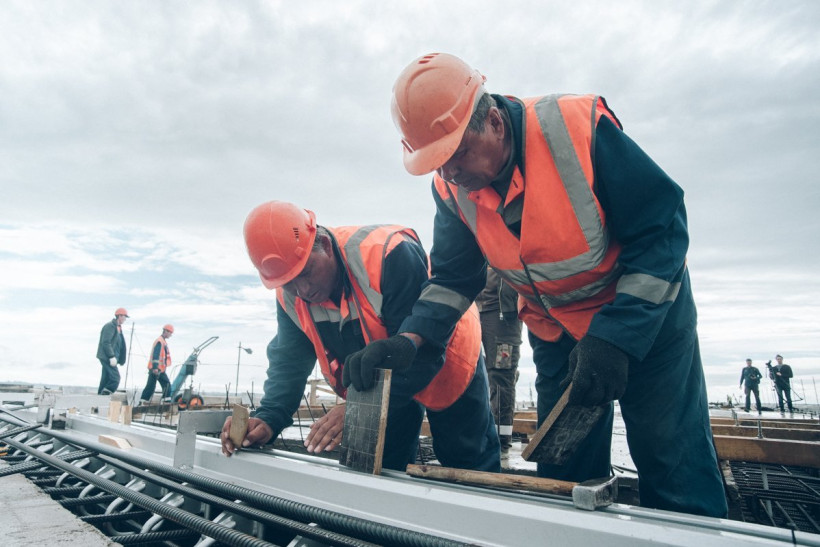 человек круглосуточно работают на строительстве моста