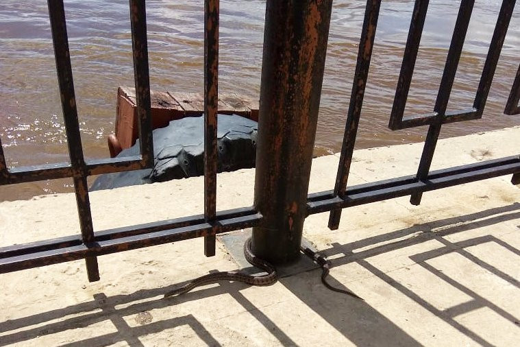 Паводок выгнал ядовитых змей на набережную Амура в Благовещенске