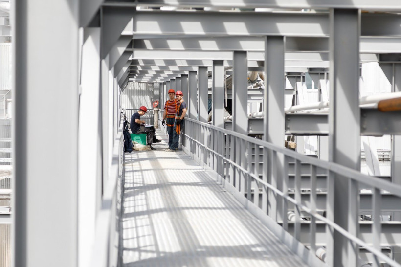 Строительная каска и резиновые сапоги — сегодня главные атрибуты на строительной площадке Покровского автоклавно-гидрометаллургического комбината (ПАГК). Несмотря на то что объект готов на 95 процентов, работы продолжаются. На строительных участках трудятся почти 400 сотрудников подрядных организаций.