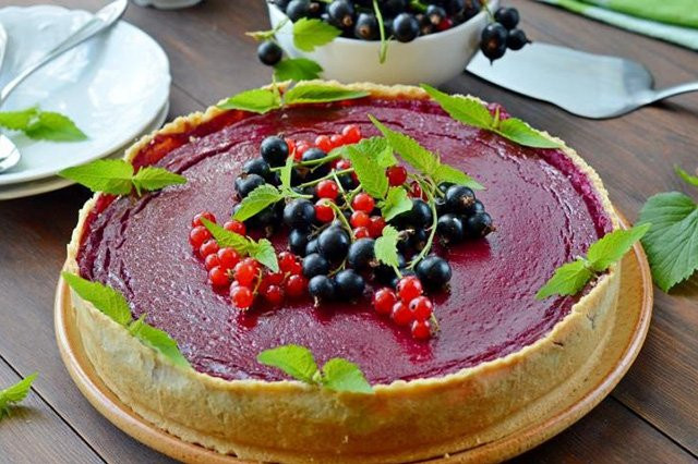 Мука — 150 г, масло сливочное — 50 г, сахар тростниковый — 50 г, яйцо— 1 шт. Начинка: смородина черная — 200 г, сахар — 120 г, сливки (33—38%) — 100 мл, яйцо — 2 шт., крахмал картофельный — 20 г.
