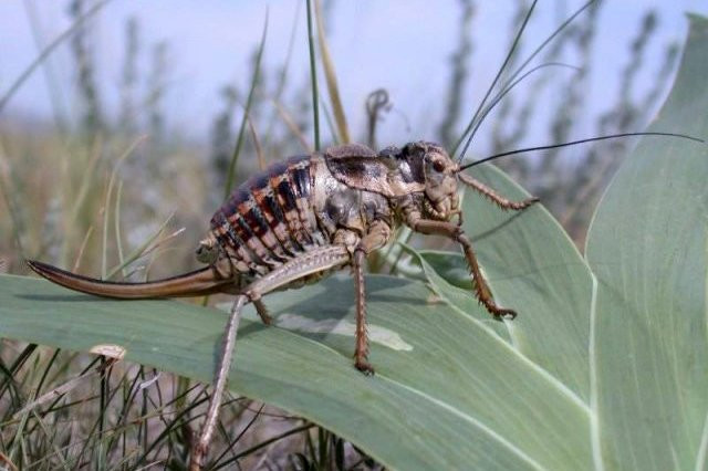 — Это родственник кузнечика — насекомое относится к прямокрылым. На снимке самка, это видно по саблевидному яйцекладу, — говорит доцент кафедры биологии.