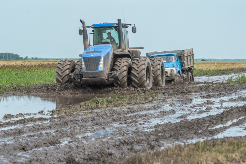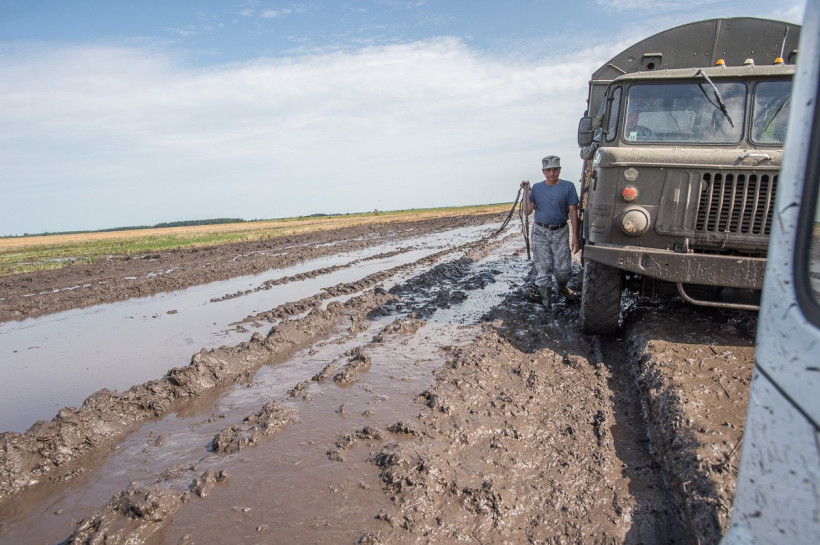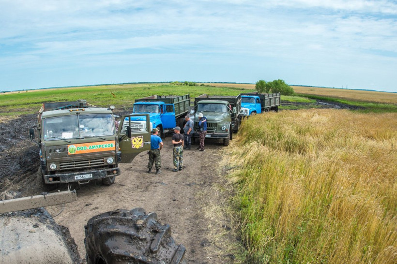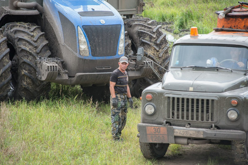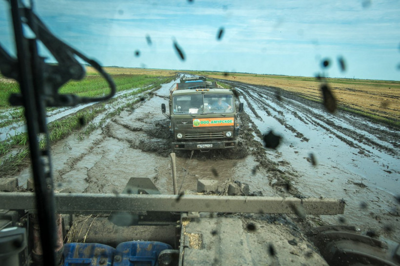 В болотистые поля не могут пройти большегрузы. Комбайны на разгрузку зерновых бункеров идут к обочине сами. Даже добраться к угодьям — большая проблема: с грязью по пояс не справляются грузовики. Прошлым летом здесь спокойно проезжали легковушки — сегодня местные работники называют дорогу трофи-рейдом, а тракториста, вызволяющего из чавкающей колеи, — паромщиком. «У нас здесь переправа. Мужики сами едут и фотографируют, как три ЗИЛа цепляются тросами и тракторист их волочит», — рассказывает бригадир.