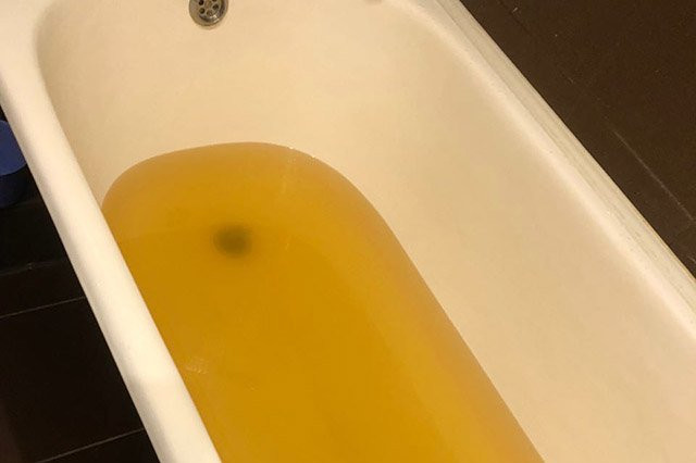 — Вода и раньше бывала плохой примерно раз в год, но этим летом впервые такой ужас, — показывает фото и видео с оранжевой водой жительница дома по Октябрьской Александра Фрейтаг. — Вода до такой степени грязная, что не то чтобы пить ее нельзя, я даже постирать в ней не могу, вожу белье сестре. А ребенка помыть… Моей дочке полгода, у нас в подъезде около 10 семей с новорожденными детьми. Муж привозит воду с колонки. Вчера приходила соседка плачет: у нее новая сантехника, покрытия уже нет — вода и средства для чистки разъели.