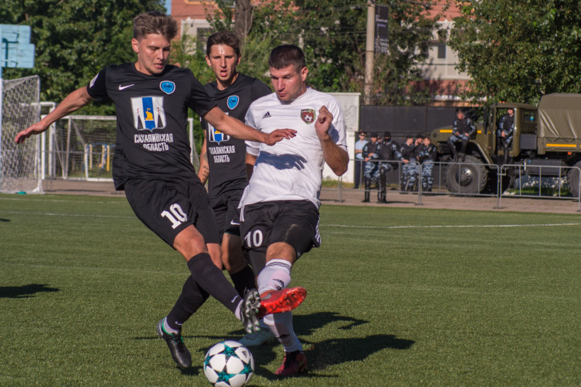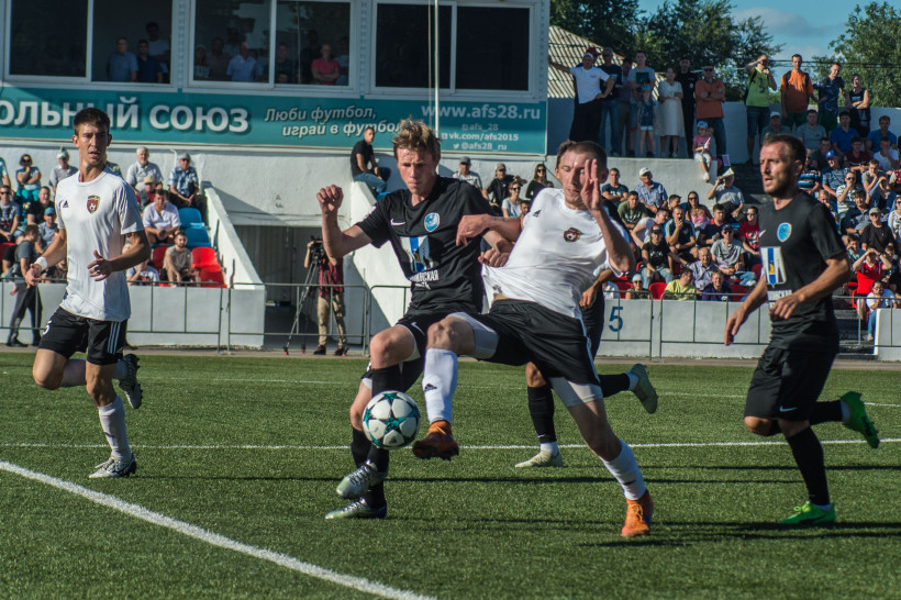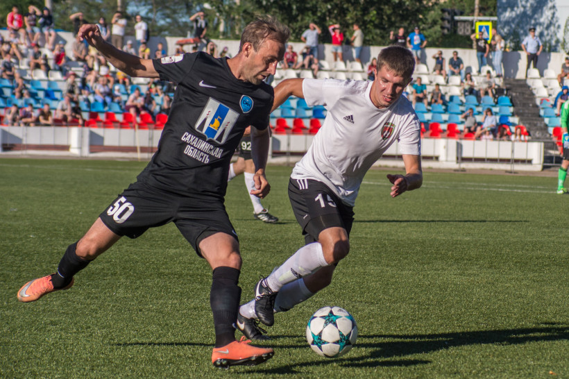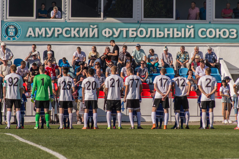 В субботу, 11 августа, в матче 1/64 Кубка России благовещенская команда уступила сахалинцам. Единственный гол в ворота соперников забил наш болельщик, который выскочил на поле во время остановки матча. Трибуны взорвались аплодисментами. За напряженной борьбой двух команд в течение двух часов пристально следили сотни человек на стадионе «Спартак». В первом тайме счет открыл сахалинец Александр Гаглоев. Во втором гол в ворота благовещенцев со штрафного забил Юрий Коломыц, а после Максим Антух. Команда-победительница встретится с иркутским «Зенитом» в следующем этапе Кубка России. Как прошла игра — в фоторепортаже Андрея Ильинского.