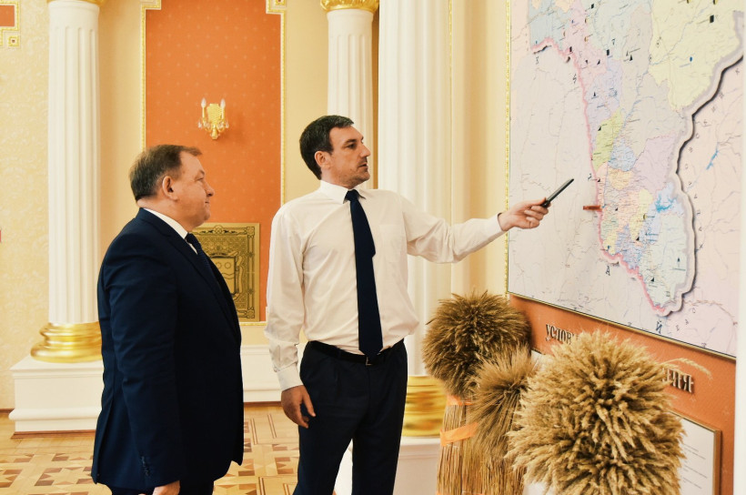 — Вот, Василий Александрович, детский сад на 120 мест начинаем строить, — с гордостью объясняет глава Благовещенского района Сергей Адаменко.