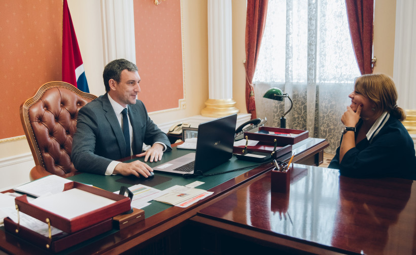 В кабинет заходят первый заместитель председателя правительства области Татьяна Половайкина и заместитель министра внешнеэкономических связей, туризма и предпринимательства Екатерина Киреева. Встречу инициировал сам губернатор — возникли вопросы по выдаче квот на работу иностранных граждан на будущий год.