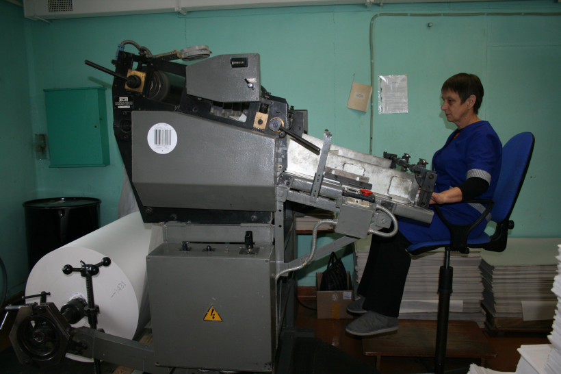 Работники занимаются фальцовкой газеты.