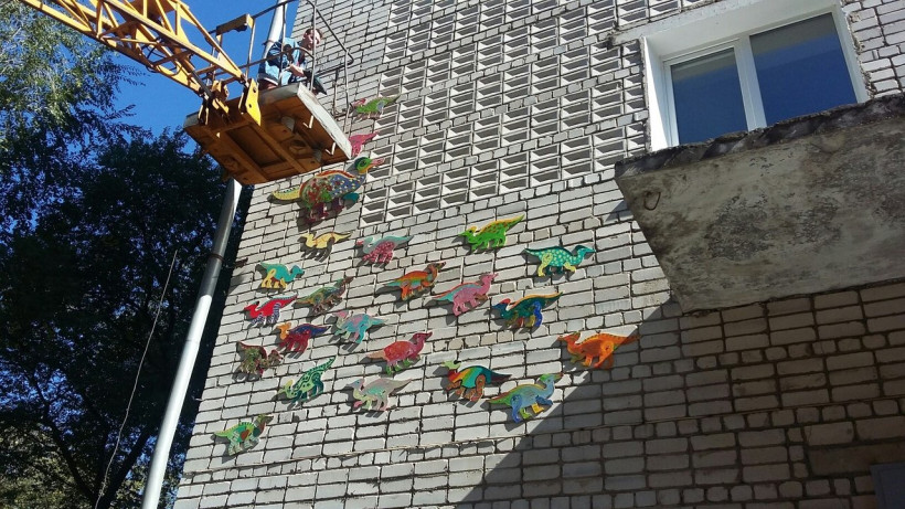 — Фанерные фигурки на день города разрисовывали акриловыми красками. Сегодня мы акцию продолжили. Фигурки покрыли специальным лаком, который используют при строительстве яхт. Лак убережет динозавров от порчи из-за осадков. Амурозавров на стену крепим основательно, навсегда, — рассказали организаторы.