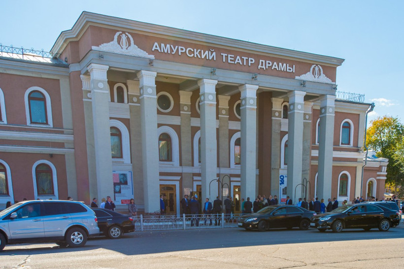 За полчаса до начала церемонии в театр драмы съехался весь цвет области: региональное правительство, главы городов и районов, руководители федеральных структур, руководители крупных предприятий, общественники. Рукопожатия, разговоры — под бравую музыку оркестра Дальневосточного высшего общевойскового командного училища.