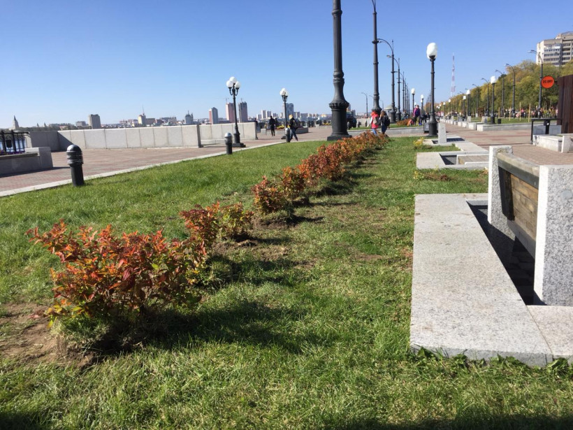 На набережной Амура появилась Аллея мечты: благовещенцы высадили более 200 саженцев рябины и спиреи