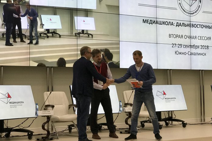 В Южно-Сахалинске прошла вторая очная сессия проекта «Медиашкола: Дальневосточный репортер», который реализуется с февраля текущего года по инициативе аппарата полномочного представителя президента РФ в Дальневосточном федеральном округе (ДФО). Участие в мероприятиях Медиашколы на Сахалине приняло около 250 представителей СМИ и пресс-служб государственных органов власти всех субъектов ДФО.