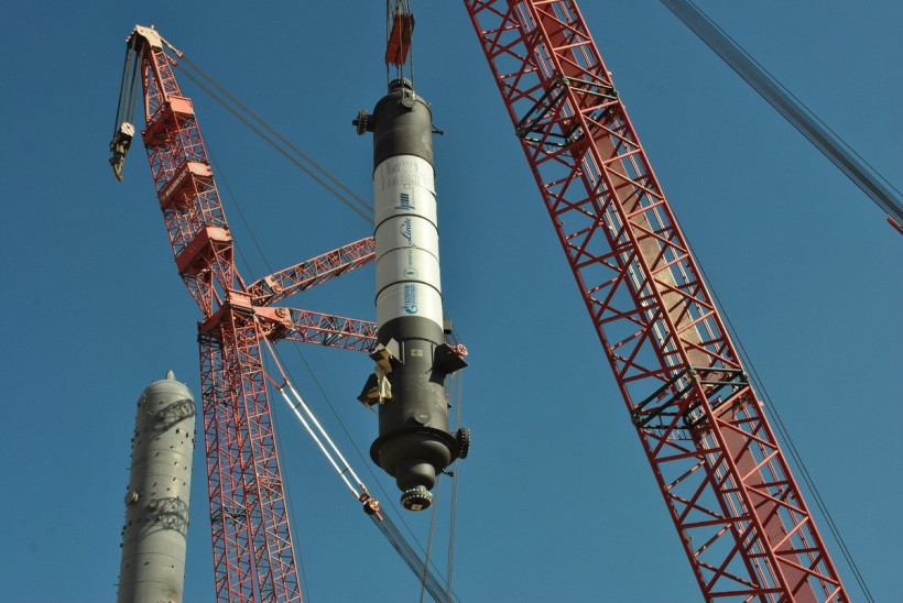 Теплообменник весом около 49 тонн доставлялся на стройплощадку поездом, а затем автомобильным транспортом. Специалисты подготовили фундамент для его установки. Два аналогичных аппарата будут поставлены на ГПЗ в 2019 и 2021 годах.