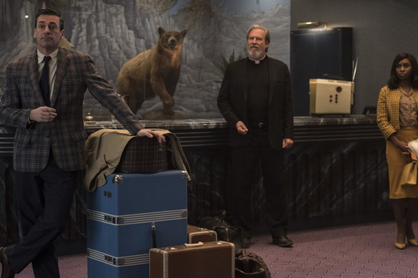Понемногу разворачивая орудия в сторону зрительного зала, Годдард не забывает устанавливать указатели. Герой Хэмма демонстрирует двойное дно чемодана, как только заходит в номер. А через пару минут он уже находит в предметах интерьера умопомрачительное количество подслушивающих устройств. Персонаж Бриджеса в поисках портье (больше похожего на коридорного из «Четырех комнат») обнаруживает, что в номерах установлены зеркала Гезелла — как в комнатах для допросов, полупрозрачные. Все кругом вранье и притворство, и очень скоро очаровательно доверительный диалог между двумя персонажами заканчивается членовредительством. С этого момента самому Годдарду не остается ничего, кроме как развязать героям руки. Перед этим он успевает обозначить эпоху: конец 60-х, в телевизоре — Никсон, во Вьетнаме — война, в ФБР — Гувер. Все это на самом деле не так уж и важно, ведь разыграть подобный сюжет можно было в любых декорациях. Но как сам «Эль Рояль» берет за основу отель, принадлежавший Фрэнку Синатре, так и всему остальному нужен какой-то временной фундамент. Поэтому режиссер снова обращается к приемам Тарантино, разбивает фильм на совершенно размытые главы, а для персонажей организовывает несколько флешбэков, за которые хочется дать по рукам монтажеру фильма.