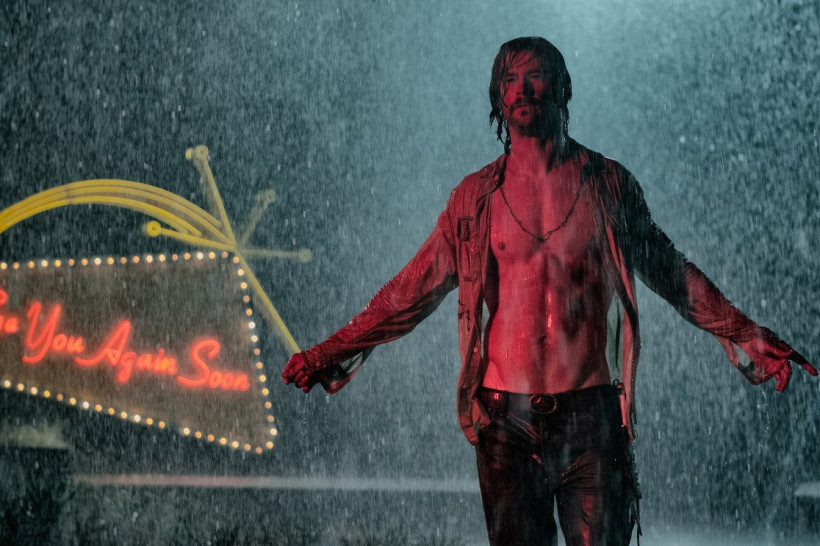Могучий Квентин надолго поселяется в происходящем на экране. Герои убивают и погибают в самые, казалось бы, неподходящие для этого моменты, которые к тому же предстают перед зрителем с разных ракурсов по нескольку раз. Потихоньку выясняется, что у сюжета все-таки несколько линий, которые неотвратимо сходятся в одной точке. На горизонте появляется Крис Хэмсворт с руками, раскинутыми во вполне религиозном жесте, и претендует на статус истинного пастора. Но и банальная до отвращения секта, в которой верховодит этот персонаж, оказывается вовсе даже другим объединением людей. И это уже будущий фильм Тарантино, ну надо же! Годдард, замахнувшийся (причем зря) на хронометраж почти в два с половиной часа, изощряется как может: если уж героиня принимается петь, так исполняет всю песню, а действие при этом просто блуждает по кругу. Это, конечно, не вызывает в зрителе огромного чувства благодарности: вставные клипы — это немного из другой оперы. Да и диалоги, благодаря которым все тот же Тарантино может и трехчасовые фильмы делать, явно не конек Годдарда. Он это, похоже, и сам понимает, потому что быстро бросает это занятие до самого финала. Герои в «Эль Рояле» слишком бесхитростны, хоть и носят овечьи шкуры. Поэтому с каждым из них все сразу становится понятно, о чем тут еще болтать.