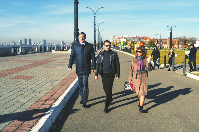 На набережной Амура в Благовещенске снова работают строители. Через год — в ноябре 2019 года — подрядчик должен будет закончить реконструкцию двух центральных участков берега. Предстоит облицевать гранитом стенку набережной, сделать пешеходную дорожку, проезжую часть, подвести освещение и проложить ливневую канализацию. Как продвигаются работы, вчера оценил министр по развитию Дальнего Востока Александр Козлов. Он осмотрел набережную вместе с губернатором Василием Орловым и мэром областного центра Валентиной Калитой.