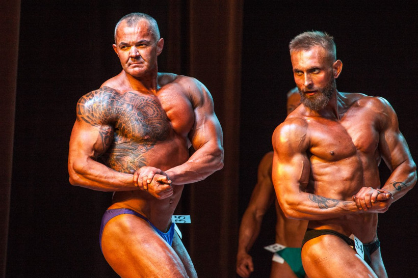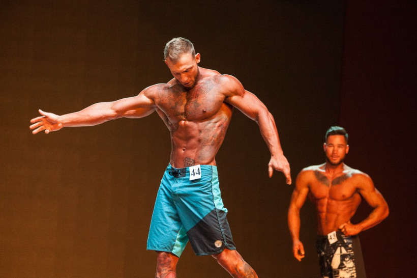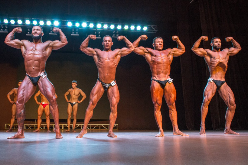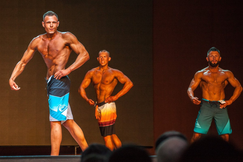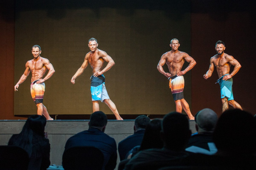 Самая зрелищная номинация — мужской бодибилдинг. На фоне выступления сильной половины соревнований играет рок.
