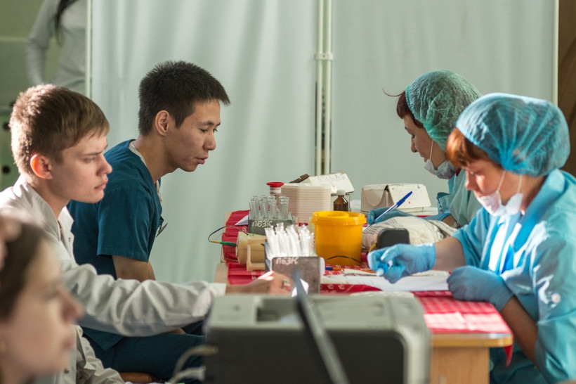 Перед тем как сдать кровь, каждый потенциальный донор должен пройти экспресс-тест на уровень гемоглобина. Для этого на отдельном посту находятся четыре лаборанта. Процедура занимает около 10 минут. Тем, у кого гемоглобин понижен, придется отказаться от участия в акции. В противном случае после забора крови может ухудшиться самочувствие вплоть до обморока.