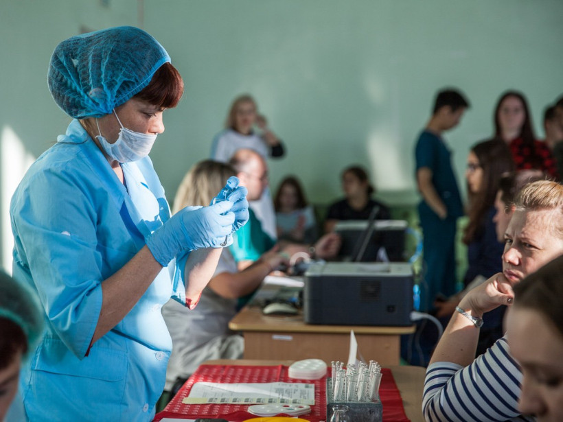 — У нас почти весь первый курс сокрушается. Очень хотели поучаствовать в акции, все ведь в будущем станут медицинскими работниками, но некоторые еще слишком юные. Хотя я, когда сама была студенткой, однажды скрыла свой возраст и сдала кровь, — смеется заместитель директора медколледжа по учебной работе Татьяна Васильева. — Мне было семнадцать, и тогда за этим так не следили. Сегодня сдавать кровь я не буду, годы уже не те.