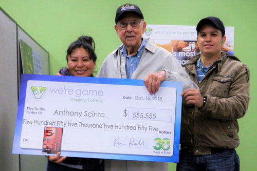Если вы ни разу в жизни не покупали лотерейные билеты, то, возможно, пришло время сделать это. Как, например, Энтони Сцинт, пенсионер из Александрии (Вирджиния, США). Он за всю свою жизнь ни разу не принимал участие в лотереях и вот наконец решил попробовать. То ли мужчина и впрямь оказался на редкость везучим, то ли сработала «удача новичка», но Энтони, купивший первый в своей жизни билет Virginia Lottery, выиграл главный приз и стал богаче на 555 555 долларов.