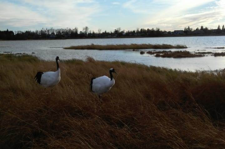 Жители Октябрьского района приручили краснокнижных японских журавлей