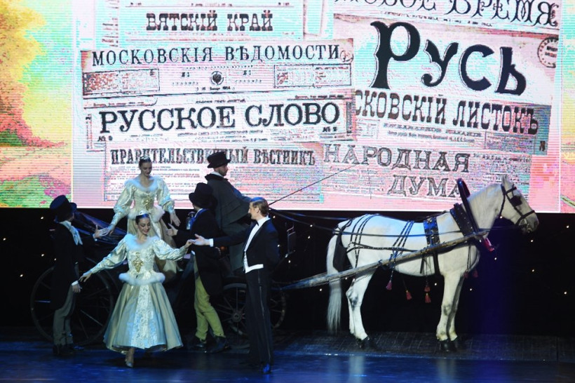 Первое поздравление с большой сцены самого большого театра Москвы (на нее может въехать даже танк) — от президента России Владимира Путина. Его приветствие зачитал первый замглавы администрации президента РФ Сергей Кириенко. Глава государства подчеркнул, что профессия журналиста всегда пользовалась особым доверием в России: о больших, ключевых событиях страна узнает из СМИ, а Союз журналистов — консолидирует журналистское сообщество и формирует гражданскую позицию телеканалов и изданий.