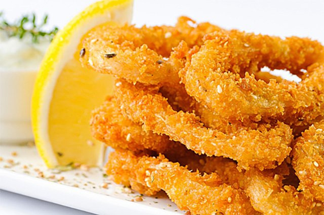 Кольца кальмара с чесночным соусом